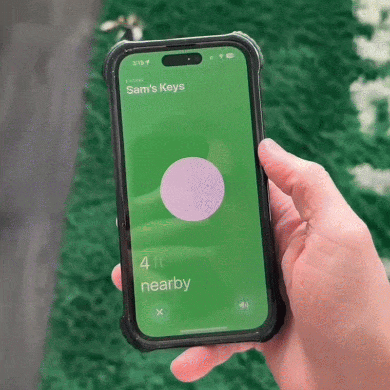 Open de app, zie direct hoeveel meter je verwijderd bent en laat je sleutels piepen. Binnen seconden gevonden. Of ze nu onder de bank liggen of diep in je tas.